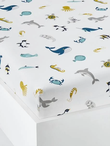 Drap-housse Enfant ABECEDAIRE MARIN Ivoire Imprimé – Vertbaudet