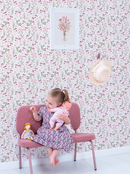 Explosion de fleurs avec ce papier peint composĂ© de petites roses sur fond vert pour crĂ©er un vĂ©ritable jardin dans la chambre de votre enfant !  Â