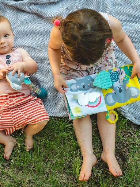Un adorable livre en tissu à suspendre à la poussette ou au cosy qui permet à votre bébé de faire le plein de découvertes. A chaque page il se familiarise avec des matières et textures variées à toucher et à attraper.