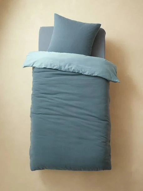Délicate et confortable, la gaze de coton offre un cocon de douceur à vos enfants. Cette belle parure unie composée d’une housse de couette et d’une taie d’oreiller propose une palette de coloris tendances qui s’accordent avec toutes les déco !