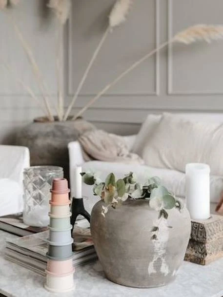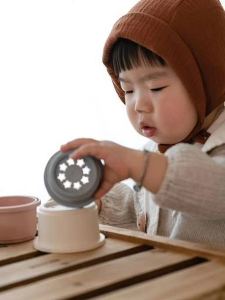 Les gobelets à empiler sont inspirés de la tour « Rundetårn » à Copenhague, au Danemark, et le jouet fait partie de la collection Hygge danoise de jouets pour les enfants de 0 à 3 ans.